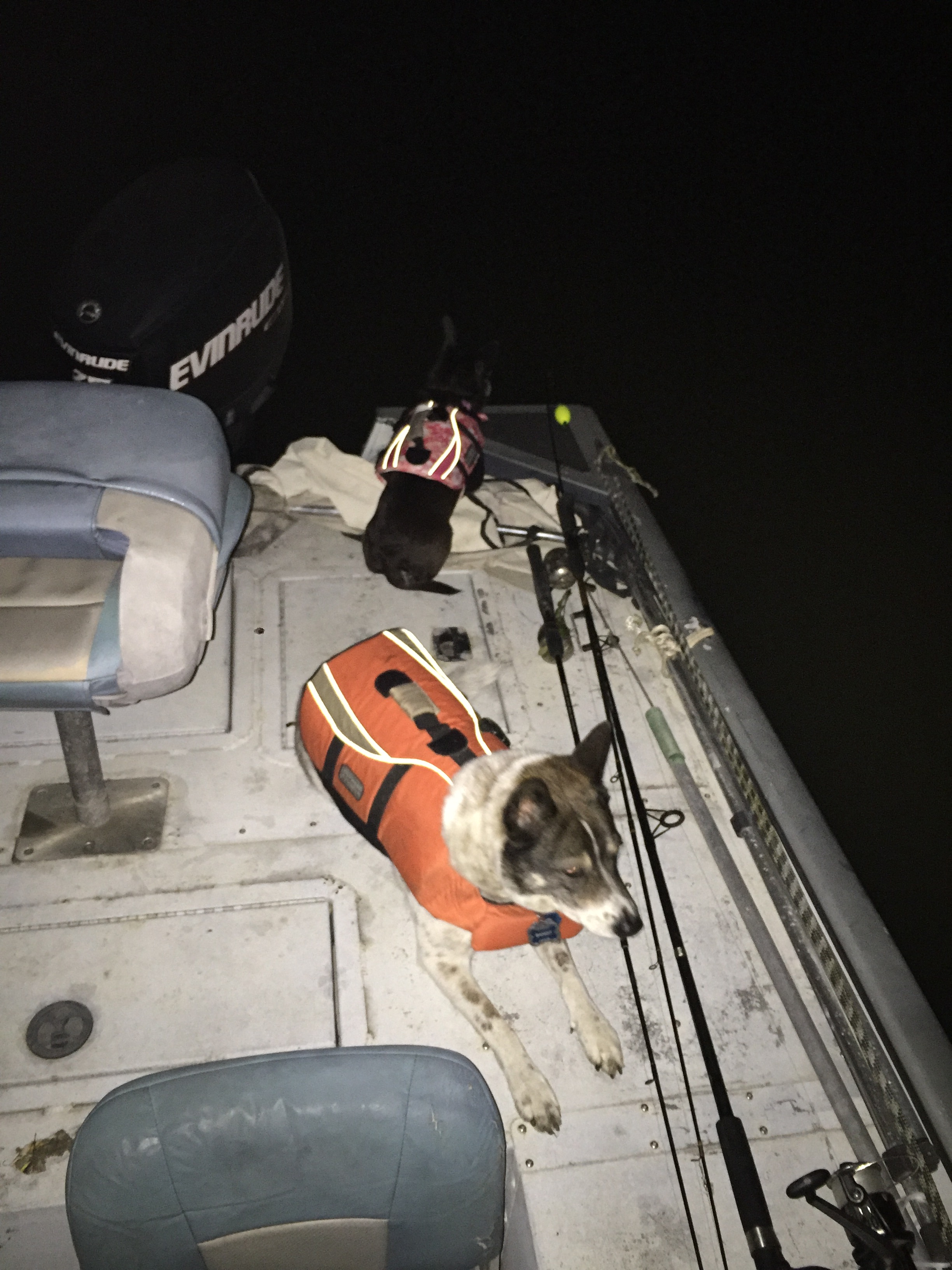 Khandi and Bandit accompanied R on a fishing trip after I got home from Austin. I don’t know which of them enjoyed it more. It was Khandi’s first time in the boat and in her life vest but she took to it like a trooper and had a ball. Bandit always loves trips with his daddy so they added more happy memories.