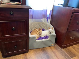 I’m supposed to be doing daily exercises for physical therapy but just haven’t been able to focus. As in: haven’t done them even one time in a week. I’ve cancelled 3 appointments. It’s hard to concentrate right now and I think partly due to grief over Bandit. We still cry almost daily. But life has to go on, doesn’t it? And I find myself about to resume a former chapter in my life. Now that we’re moved and the majority of the organizing (for me, anyway) has been done, it’s time for me to sew for the first time in my new sewing room in the new house. Not that I have a lot of sewing planned, just a few blankets to hem and a damaged quilt to repair. But it’s the first time I’ve sewn anything at all since December 2018 after my mother died. Life got too busy to do anything as relaxing or soothing as sewing.